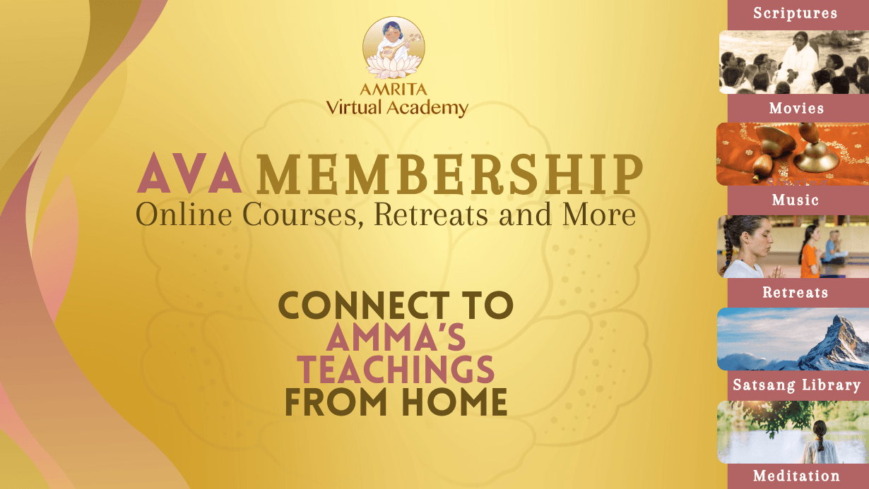 💖 Stay tuned for the latest news, updates, and releases from the AVA Membership! Unique courses, retreats, satsangs, Amma movies, guided practices & more.
